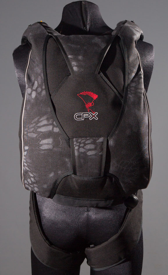 The Multi-Flex articulated harness design, originally designed and patented by Sandy Reid, has become the world standard for virtually all sport parachute harnesses.The new CPX configuration, utilizes a new leg strap configuration originally developed in conjunction with the Voodoo Curv.